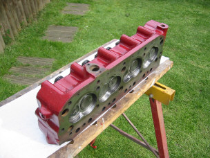 25. The car ran well during its first year back on the road but water loss was a problem and more power would be better. The head turned out to be cracked. In Summer05 I bought a second hand late head from MECH SPEC, here it gets soaked in de-scaler. |